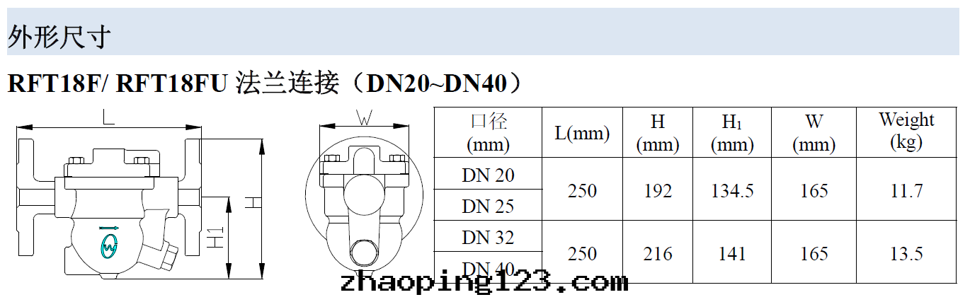 适用(yòng)于(yú)中(zhōng)型換热設備疏水(shuǐ),RFT18F/ RFT18FU最(zuì)大(dà)排量(liàng)約1800kg/h