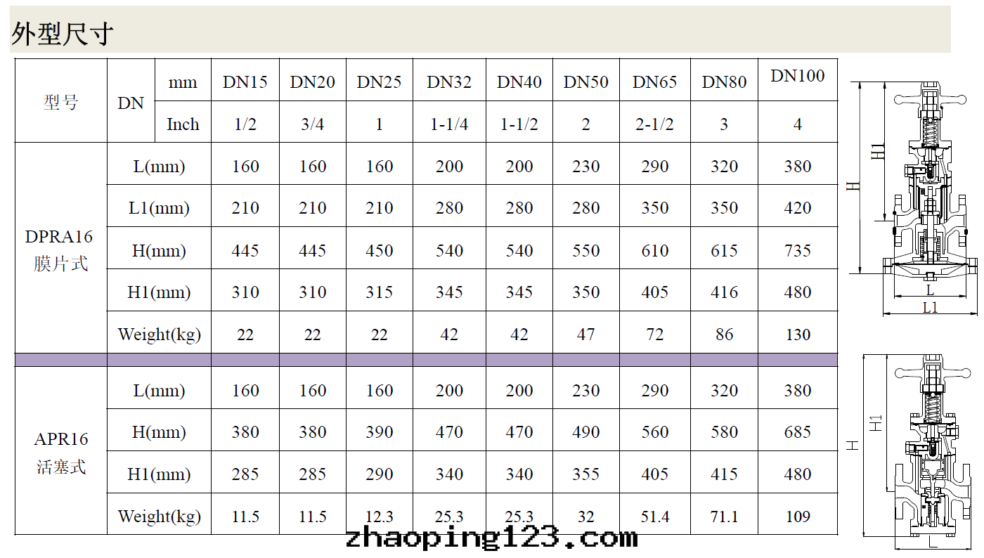 8、DN15~50口(kǒu)徑,建議選用(yòng)膜片(piàn)式減壓閥DPRA16;DN65及(jí)以(yǐ)上口(kǒu)徑,建議選用(yòng)活塞式減壓閥PRA16。