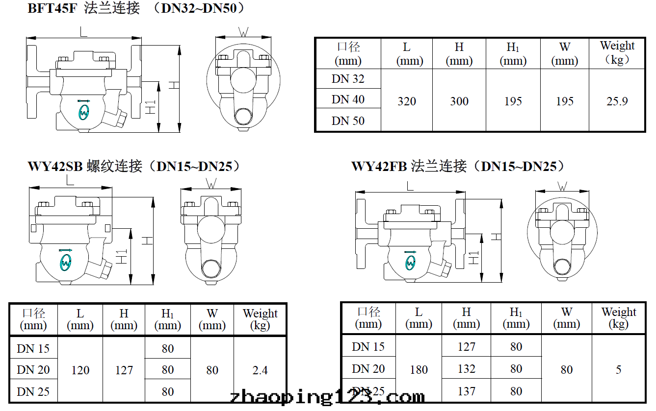 規格:DN15~50,其(qí)中(zhōng)WY42SB为(wèi)螺紋連(lián)接, 其(qí)他(tā)均为(wèi)法(fǎ)兰連(lián)接。