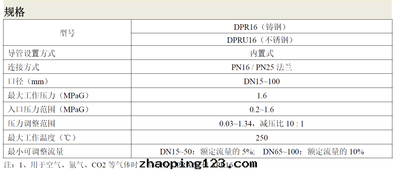 7、當設定(dìng)壓力低(dī)于(yú)2barg或(huò)口(kǒu)徑为(wèi)DN15~50时,建議選用(yòng)膜片(piàn)式減壓閥。DN65及(jí)以(yǐ)上口(kǒu)徑,建議選用(yòng)活塞式減壓閥PR16。