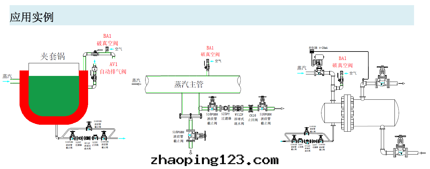 Way's破真(zhēn)空(kōng)閥BA1 主(zhǔ)要(yào)用(yòng)于(yú)蒸汽和(hé)以(yǐ)液體(tǐ)介質(zhì)为(wèi)主(zhǔ)的系(xì)統。如(rú):蒸汽主(zhǔ)管(guǎn)、汽-水(shuǐ)換热(rè)器、空(kōng)气(qì)盤管(guǎn)、夾套(tào)鍋(guō)、存儲罐(guàn)、滅菌室(shì)、鍋(guō)爐給(gěi)水(shuǐ)罐(guàn)、噴霧(wù)系(xì)統、液體(tǐ)工藝管(guǎn)线以(yǐ)及(jí)冷(lěng)卻水(shuǐ)系(xì)統。