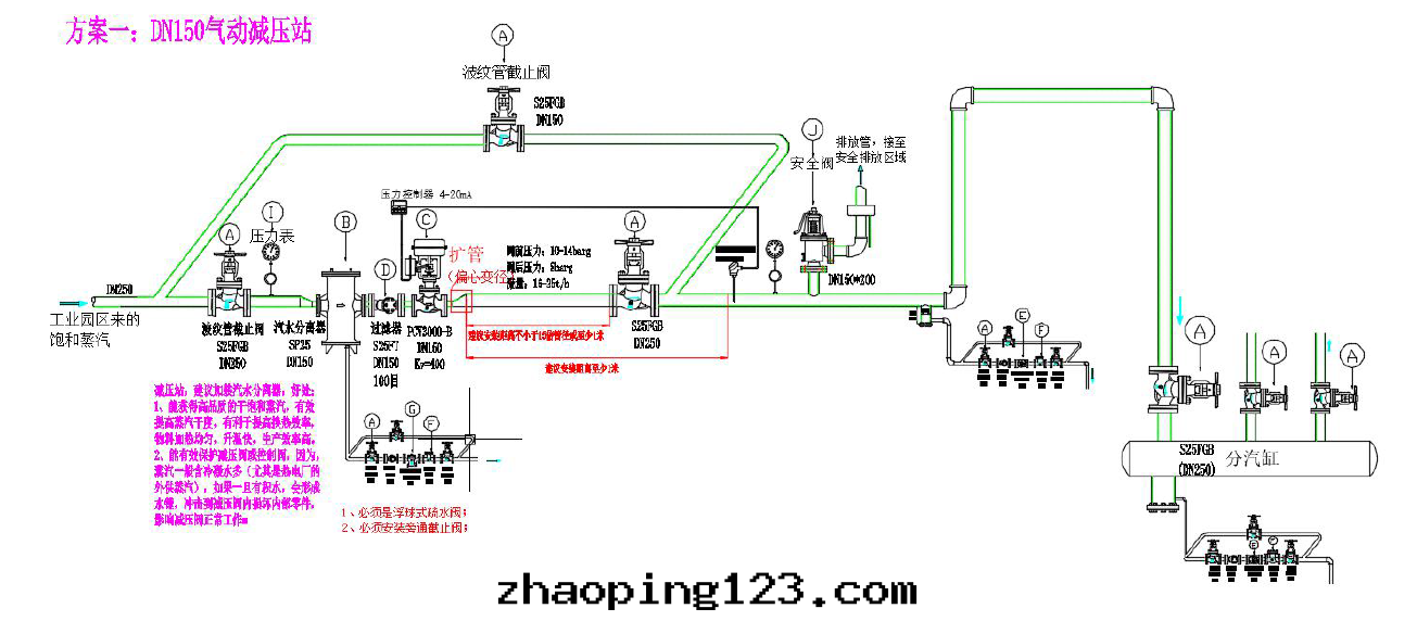 工況:来(lái)汽管(guǎn)道(dào)DN200,直(zhí)接選用(yòng)一(yī)个與(yǔ)管(guǎn)道(dào)同(tóng)徑的(de)DN200自(zì)力式減壓閥或(huò)普通(tòng)的(de)活塞減壓閥。