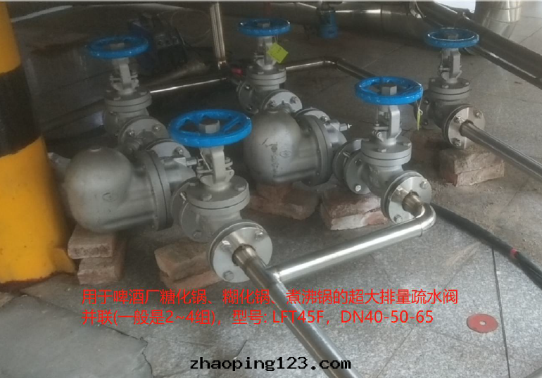 煮沸鍋(guō)体積最(zuì)大(dà),很多(duō)是(shì)60-80M³,煮沸温(wēn)度大(dà)約105-108℃,蒸汽耗量(liàng)最(zuì)大(dà),約等于(yú)7~8t/h,大(dà)多(duō)是(shì)3組加热盤管(guǎn)+1組底部(bù)夾套的(de)加热方(fāng)式,3組加热管(guǎn)選用(yòng)維遠(yuǎn)way’s超大(dà)排量(liàng)杠杆浮球式疏水(shuǐ)閥LFT45F型号(hào)並(bìng)聯,自(zì)带(dài)破蒸汽綁裝(zhuāng)置;底部(bù)選用(yòng)一(yī)組FFT45F-5自(zì)由(yóu)浮球式疏水(shuǐ)閥。因(yīn)为(wèi)需要(yào)保證煮沸强度,不(bù)能太猛,也(yě)不(bù)能太温(wēn)和(hé),因(yīn)为(wèi)需要(yào)保證控制閥能很精準的(de)控制温(wēn)度,準确實(shí)現(xiàn)过(guò)程控制,保温(wēn)时不(bù)能过(guò)热,還(huán)需要(yào)保證疏水(shuǐ)閥很順暢的(de)及(jí)时排水(shuǐ),不(bù)能洩漏蒸汽,这(zhè)樣(yàng)才能达(dá)到(dào)系(xì)統的(de)平衡。