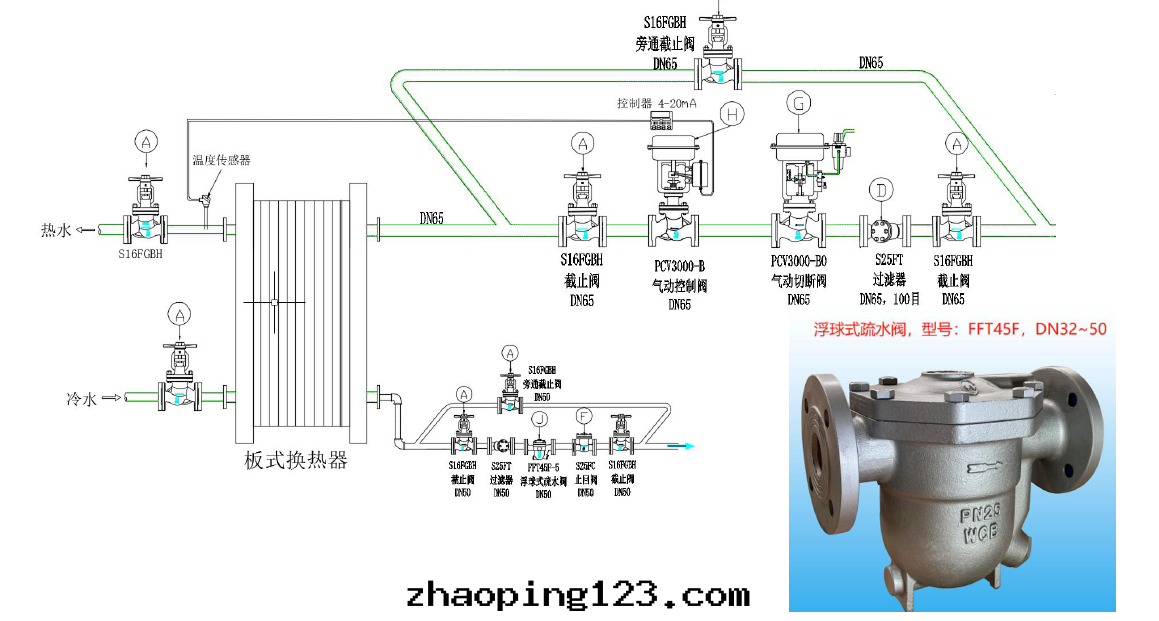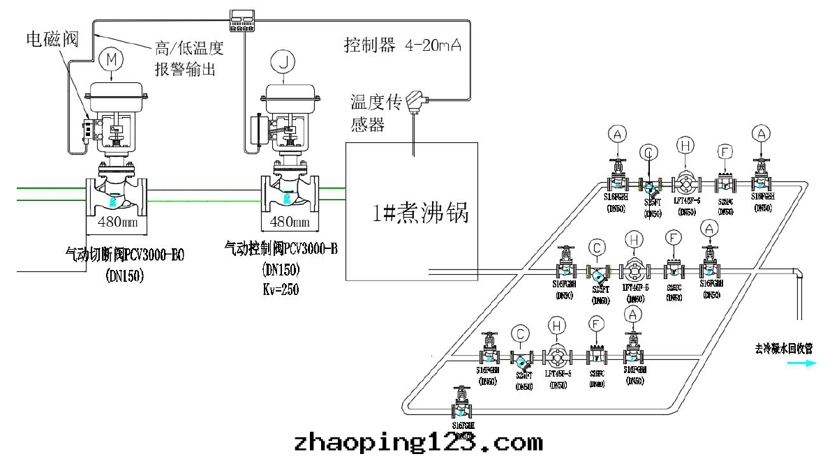 这(zhè)个方(fāng)案(àn)的(de)問(wèn)題(tí)就(jiù)是(shì),當使用(yòng)流量(liàng)很小时,控制閥開(kāi)度很小,控制精度会(huì)有(yǒu)所(suǒ)下(xià)降,使用(yòng)寿命相对(duì)会(huì)縮短(duǎn)一(yī)些(xiē),而(ér)且(qiě)很小開(kāi)度时,会(huì)有(yǒu)噪音(yīn)。这(zhè)方(fāng)案(àn)雖(suī)然比前面(miàn)两(liǎng)个方(fāng)案(àn)要(yào)遜色(sè)一(yī)些(xiē),但依然有(yǒu)很多(duō)客戶願意(yì)選用(yòng),主要(yào)是(shì)因(yīn)为(wèi)管(guǎn)道(dào)簡潔,成(chéng)本低(dī),而(ér)且(qiě)選用(yòng)我(wǒ)们(men)維遠(yuǎn)way’s波(bō)紋管(guǎn)密封(fēng)的(de)气(qì)動(dòng)控制閥,可(kě)以(yǐ)大(dà)幅彌補控制精度,使用(yòng)寿命還(huán)是(shì)比大(dà)多(duō)數品牌(pái)要(yào)更(gèng)很多(duō),性(xìng)价比就(jiù)顯得很高(gāo)了(le)。