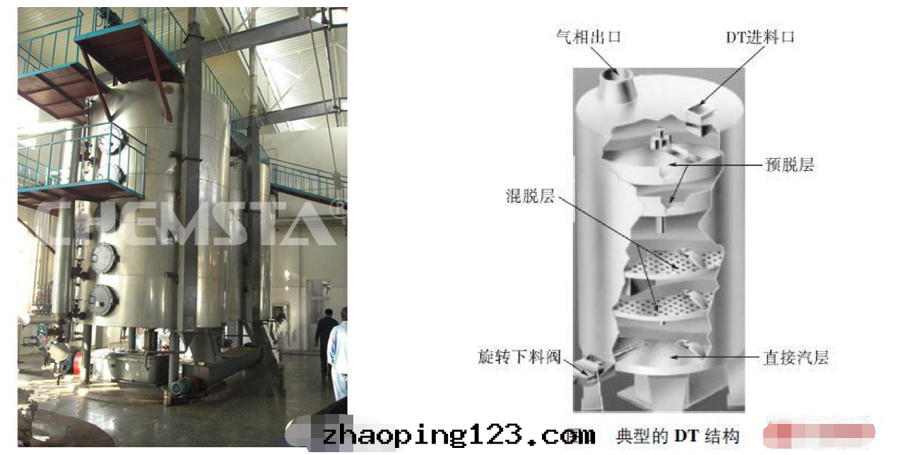 DT蒸脫機(jī)就(jiù)屬于(yú)重(zhòng)要(yào)設備,由(yóu)預脫层、混脫层、直(zhí)接汽层、抽气(qì)层、干(gàn)燥层和(hé)冷(lěng)卻层組成(chéng)。