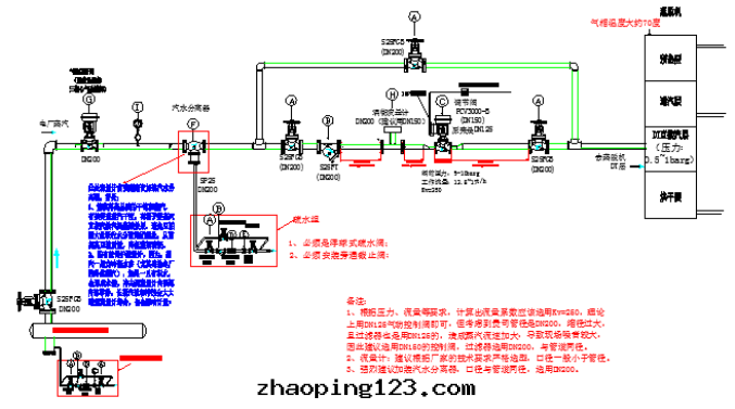 F、關(guān)鍵設備進(jìn)汽管(guǎn)上:(如(rú)果(guǒ)条(tiáo)件(jiàn)允許,應(yìng)該每台(tái)用(yòng)蒸汽的(de)設備前都要(yào)裝(zhuāng)汽水(shuǐ)分(fēn)離器)