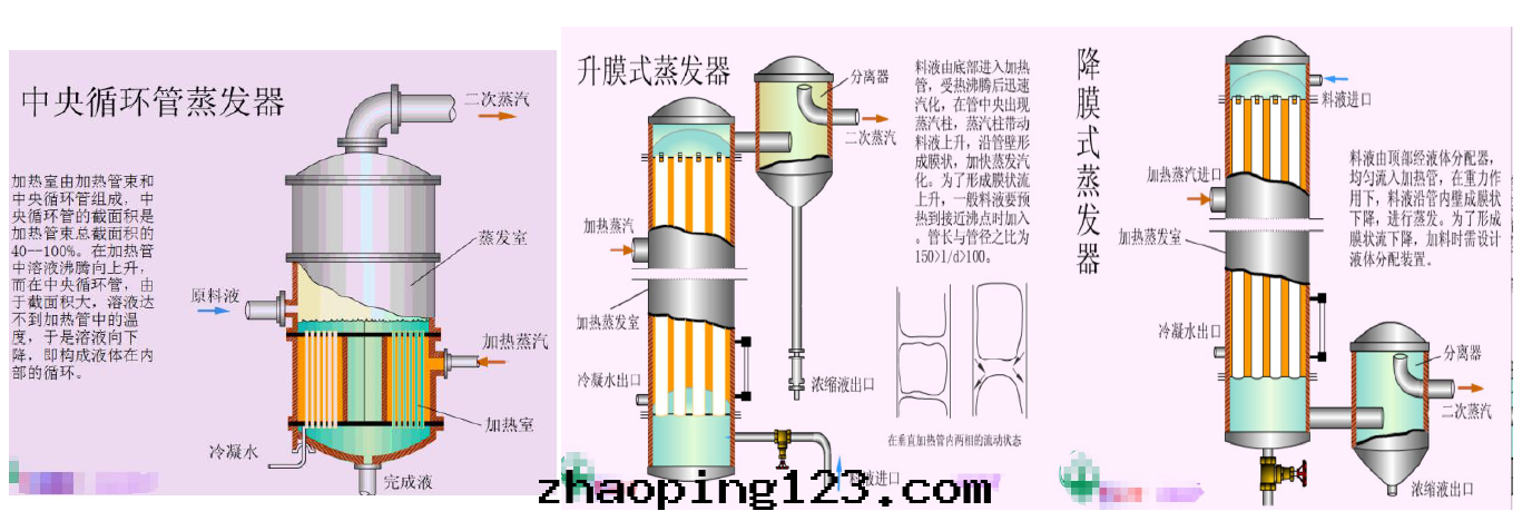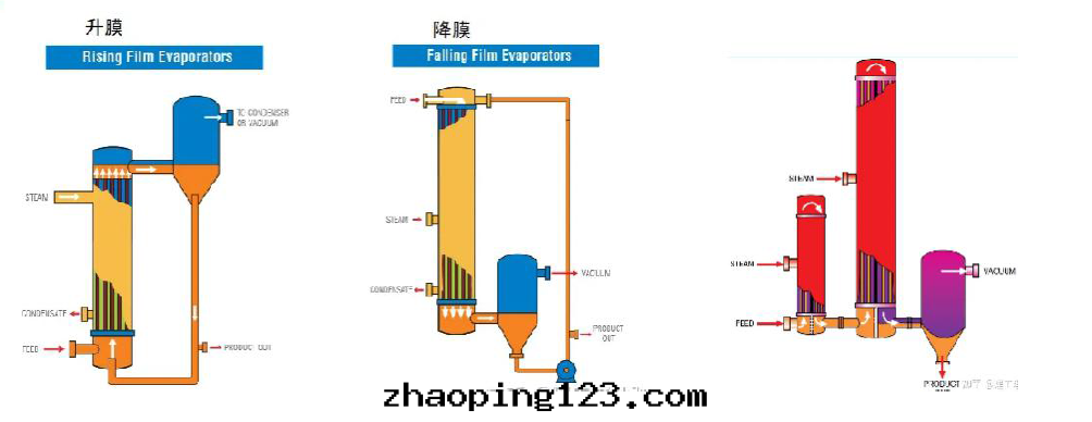 經(jīng)常有(yǒu)听(tīng)到(dào)升膜、降膜蒸發(fà)濃縮器,它(tā)们(men)的(de)主要(yào)區(qū)别在(zài)于(yú),物(wù)料進(jìn)入(rù)加热管(guǎn)並(bìng)在(zài)管(guǎn)壁(bì)上形成(chéng)薄膜,这(zhè)个过(guò)程上升還(huán)是(shì)下(xià)降的(de)問(wèn)題(tí)。有(yǒu)些(xiē)系(xì)統里面(miàn),其(qí)一(yī)个加热器里就(jiù)兼有(yǒu)升降膜。