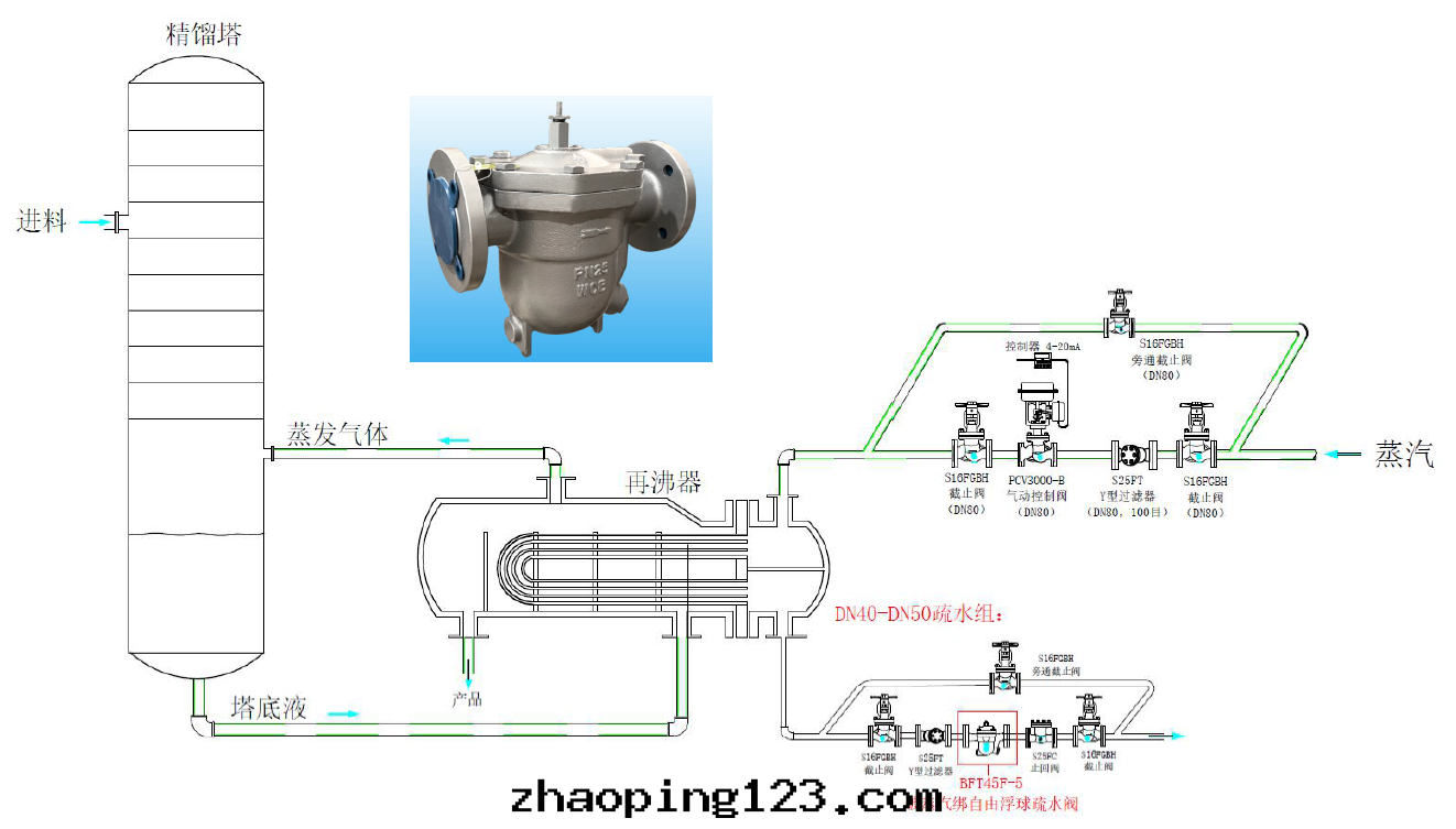 精餾塔其(qí)實(shí)很嬌气(qì),當有(yǒu)不(bù)該進(jìn)入(rù)的(de)物(wù)料如(rú)不(bù)凝气(qì)体被(bèi)加入(rù),或(huò)者(zhě)較重(zhòng)組分(fēn)進(jìn)入(rù)都会(huì)让塔不(bù)舒服(fú)。所(suǒ)以(yǐ)嚴格控制精餾塔的(de)菜單是(shì)精餾塔操作(zuò)平穩的(de)至(zhì)關(guān)重(zhòng)要(yào)的(de)条(tiáo)件(jiàn),輕(qīng)重(zhòng)組分(fēn)物(wù)料不(bù)能随便改,如(rú)果(guǒ)有(yǒu)不(bù)凝气(qì)体進(jìn)入(rù)系(xì)統,必須立即排掉它(tā),因(yīn)此(cǐ)操作(zuò)时需要(yào)手(shǒu)動(dòng)排气(qì)!也(yě)非(fēi)常有(yǒu)必要(yào)加裝(zhuāng)自(zì)動(dòng)排气(qì)閥,可(kě)以(yǐ)與(yǔ)疏水(shuǐ)閥並(bìng)聯安(ān)裝(zhuāng);另(lìng)外,这(zhè)个工況和(hé)容易産生(shēng)“蒸汽綁”,因(yīn)此(cǐ)疏水(shuǐ)閥需要(yào)選用(yòng)自(zì)带(dài)热静(jìng)力排空(kōng)膜盒和(hé)破除“蒸汽綁”裝(zhuāng)置的(de)自(zì)由(yóu)浮球疏水(shuǐ)閥,比如(rú)廣州維遠(yuǎn)way’s破汽綁自(zì)由(yóu)浮球疏水(shuǐ)閥,型号(hào)BFT45F,DN40~50;BFT18F,DN32~40。