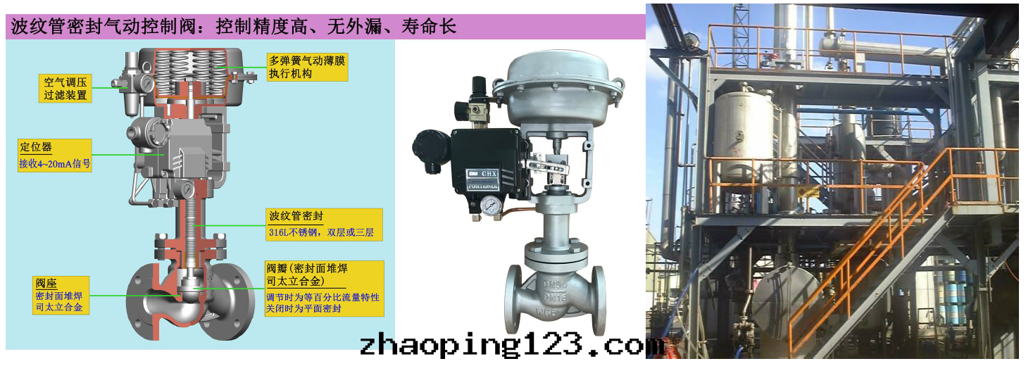 此(cǐ)型号(hào)控制閥優勢(相比傳統填料密封(fēng)控制閥):波(bō)紋管(guǎn)密封(fēng)結構,确保零(líng)外漏;因(yīn)为(wèi)沒(méi)有(yǒu)填料的(de)摩擦阻力作(zuò)用(yòng),反(fǎn)應(yìng)速度更(gèng)快,控制精度更(gèng)高(gāo);內(nèi)密封(fēng)面(miàn)堆(duī)焊司太立合金(jīn),更(gèng)耐沖蝕汽蝕,關(guān)閉时采用(yòng)平面(miàn)密封(fēng),關(guān)閉更(gèng)嚴密,使用(yòng)寿命更(gèng)长(cháng)。