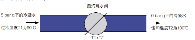 5barg壓力冷(lěng)凝水(shuǐ)飽和(hé)温(wēn)度(dù)为(wèi)159℃,具有(yǒu)的能(néng)量(liàng)是(shì)671 KJ/kg,通(tòng)过蒸汽疏水(shuǐ)閥後(hòu)壓力为(wèi)0 bar g,根(gēn)據(jù)热(rè)力學(xué)第(dì)一(yī)定(dìng)律,低(dī)壓側的冷(lěng)凝水(shuǐ)含有(yǒu)的能(néng)量(liàng)與(yǔ)高(gāo)壓側的能(néng)量(liàng)必然相同(tóng),遵守能(néng)量(liàng)守恒定(dìng)律。