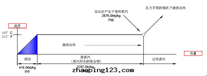 这指的是(shì)在(zài)沸騰温(wēn)度(dù)下水(shuǐ)變(biàn)成(chéng)蒸汽所(suǒ)需要(yào)吸收(shōu)的热(rè)量(liàng),期(qī)間(jiān),水(shuǐ)和(hé)蒸汽的混合物(wù)温(wēn)度(dù)不(bù)上(shàng)升(shēng),所(suǒ)有(yǒu)的能(néng)量(liàng)都用(yòng)来(lái)把水(shuǐ)由(yóu)液态變(biàn)为(wèi)气(qì)态,即飽和(hé)蒸汽。