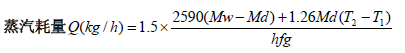 Q=蒸汽流量(liàng) (kg/h); Mw=湿(shī)布(bù)的产量(liàng) (kg/h);Md=干布(bù)的产量(liàng) (kg/h);