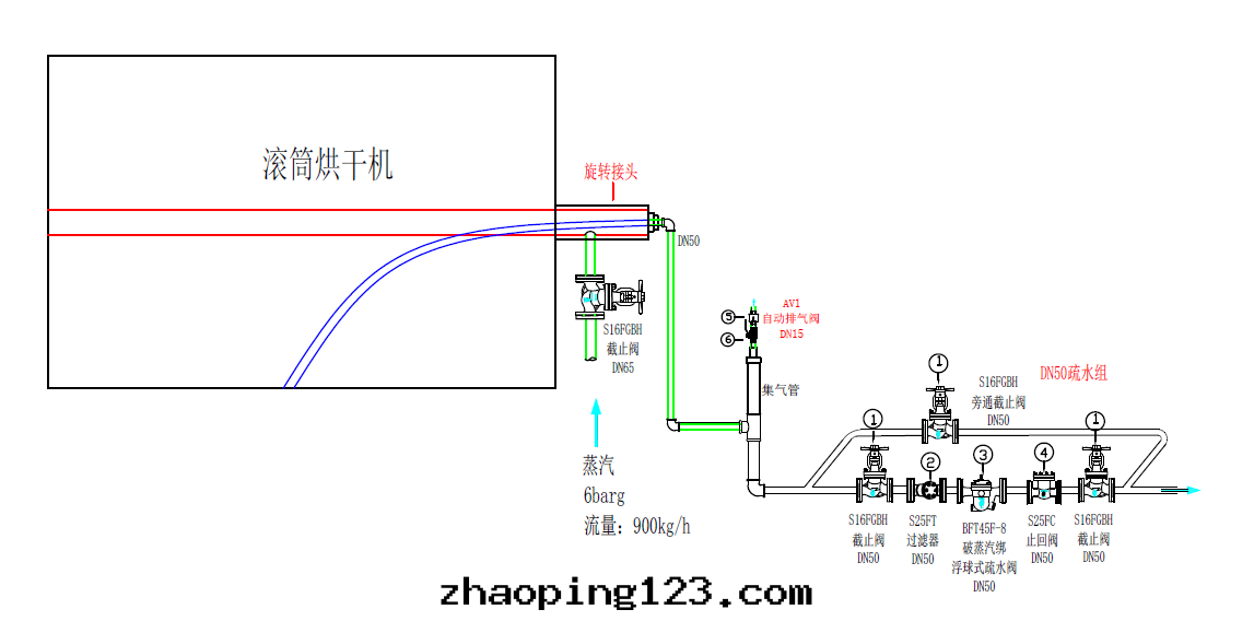 烘干滾筒的啟動(dòng)負荷很大(dà),这是(shì)因(yīn)为(wèi)蒸汽空(kōng)間(jiān)的體(tǐ)積很大(dà),需要(yào)加热(rè)的金(jīn)属滾筒質(zhì)量(liàng)很大(dà),所(suǒ)以(yǐ)選擇疏水(shuǐ)閥时(shí)應(yìng)根(gēn)據(jù)3倍的運行負荷来(lái)選型。需要(yào)提醒的是(shì),空(kōng)气(qì)的存在(zài)会造成(chéng)很大(dà)的問(wèn)題(tí),如(rú)延长(cháng)暖機(jī)时(shí)間(jiān)並(bìng)造成(chéng)表(biǎo)面(miàn)温(wēn)度(dù)不(bù)均勻,因(yīn)此(cǐ)必須采取(qǔ)措施排除烘筒中(zhōng)的空(kōng)气(qì)。