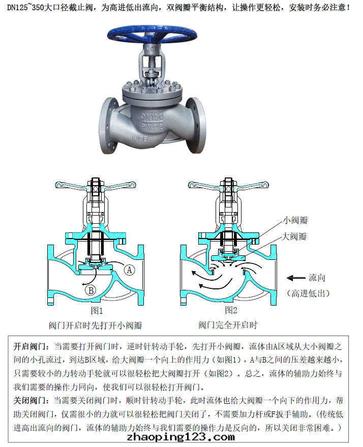 針(zhēn)对(duì)上(shàng)述問(wèn)題(tí),維遠(yuǎn)公(gōng)司設計(jì)開(kāi)發(fà)出(chū)了带(dài)平衡閥瓣的双(shuāng)向(xiàng)壓力補償結構的双(shuāng)閥瓣結構,徹底的解(jiě)決上(shàng)述問(wèn)題(tí),實(shí)現(xiàn)了双(shuāng)向(xiàng)操作(zuò)都极(jí)为(wèi)輕(qīng)便,且(qiě)密封(fēng)极(jí)其(qí)嚴密,先(xiān)小閥後(hòu)主(zhǔ)閥依次(cì)開(kāi)啟,对(duì)于(yú)新(xīn)開(kāi)啟管(guǎn)线缓慢(màn)均勻預热(rè),避免管(guǎn)线过度(dù)膨脹,並(bìng)对(duì)閥門(mén)主(zhǔ)密封(fēng)面(miàn)起(qǐ)到(dào)保護作(zuò)用(yòng)。不(bù)因(yīn)小開(kāi)度(dù)而(ér)造成(chéng)过度(dù)沖蝕,影響使用(yòng)壽命及(jí)密封(fēng)效果(guǒ)。徹底解(jiě)決了開(kāi)機(jī)时(shí)管(guǎn)线預热(rè)过快(kuài)造成(chéng)焊接或(huò)彎管(guǎn)部(bù)位(wèi)變(biàn)形及(jí)拉裂等現(xiàn)象(xiàng)的發(fà)生(shēng)。詳見(jiàn)下图(tú)S25FGB DN125-350。