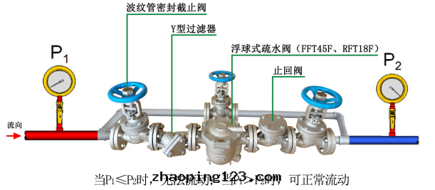 8、機(jī)械式疏水(shuǐ)閥要(yào)水(shuǐ)平安(ān)裝(zhuāng)。