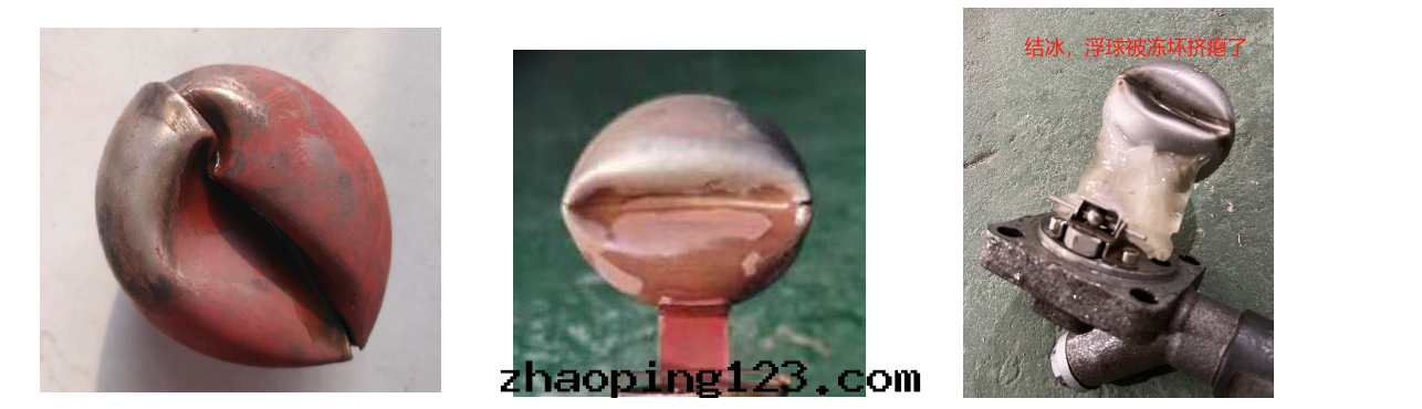 2.3冬天(tiān)寒冷(lěng)天(tiān)气(qì),停機(jī)时沒(méi)有(yǒu)做好防凍措施,冰凍,導致(zhì)閥体变形,浮球被(bèi)擠癟等問(wèn)題(tí)。