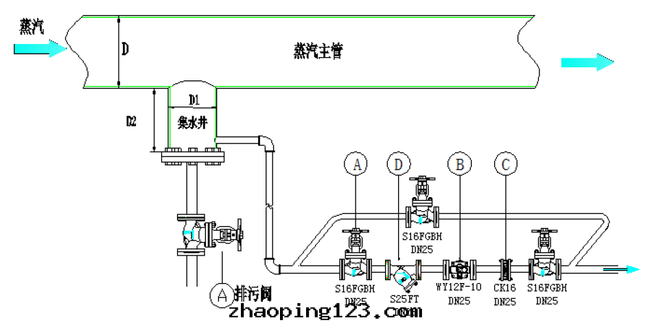 A、蒸汽主(zhǔ)管(guǎn)中(zhōng)通(tòng)常包(bāo)含有(yǒu)凝結在(zài)管(guǎn)壁(bì)上(shàng)的水(shuǐ)膜、懸浮在(zài)蒸汽中(zhōng)水(shuǐ)滴和(hé)空(kōng)气(qì)。为(wèi)使設備效率最(zuì)高(gāo),必須排除空(kōng)气(qì)和(hé)水(shuǐ)。因(yīn)为(wèi)主(zhǔ)管(guǎn)冷(lěng)凝水(shuǐ)量(liàng)很少(shǎo),因(yīn)此(cǐ)選用(yòng)way’s杠杆浮球疏水(shuǐ)閥WY12F(法(fǎ)兰)或(huò)WY12S(螺紋)系(xì)列合适。