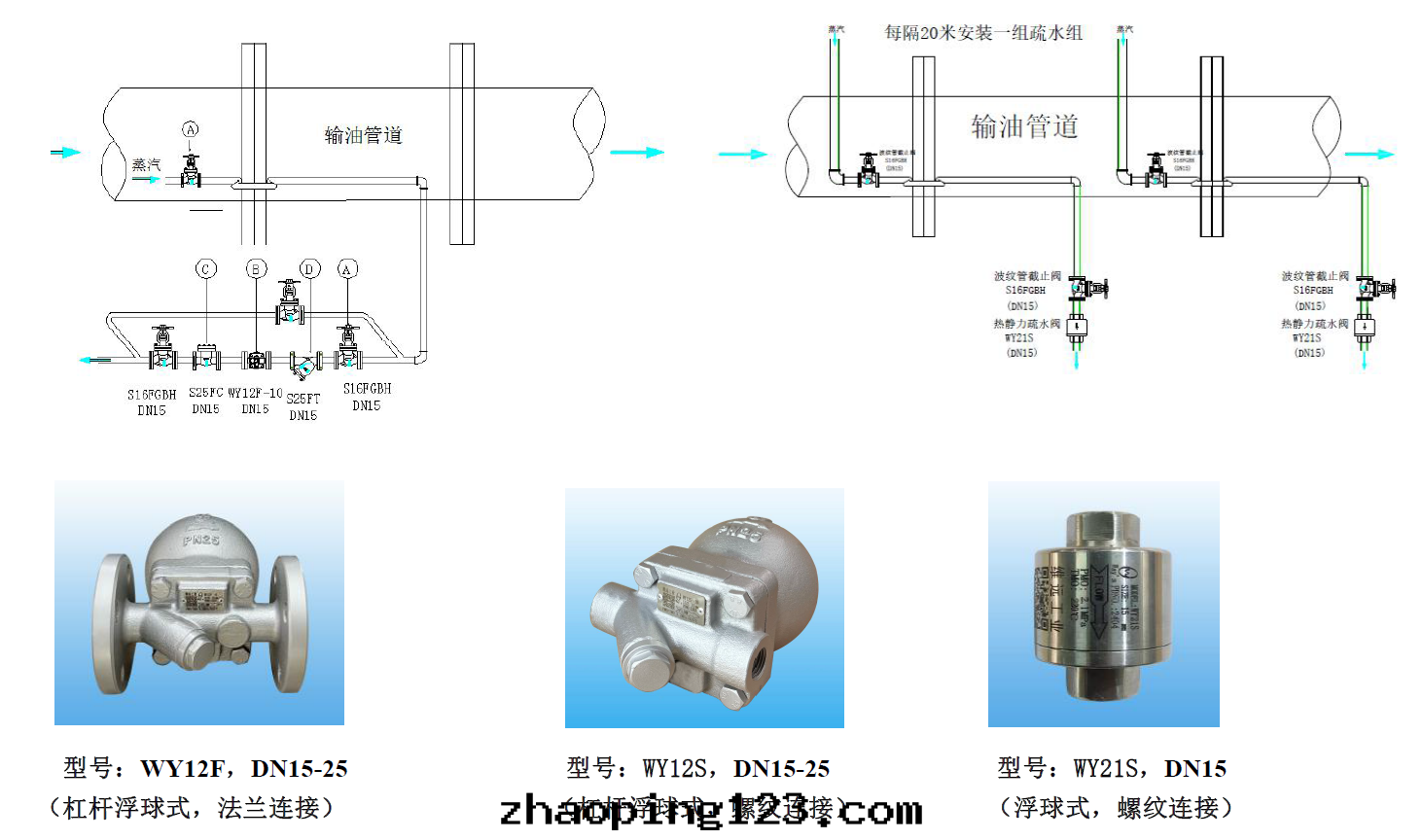 2、垂直(zhí)安(ān)裝(zhuāng):Way′s热(rè)静(jìng)力疏水(shuǐ)閥WY21S(螺紋連(lián)接)。