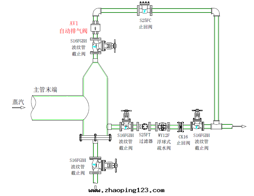 A、蒸汽主(zhǔ)管(guǎn)的末(mò)端:空(kōng)气(qì)一(yī)直(zhí)被(bèi)推到(dào)末(mò)端積聚,因(yīn)此(cǐ)要(yào)安(ān)裝(zhuāng)排气(qì)閥,且(qiě)排气(qì)閥應(yìng)裝(zhuāng)在(zài)管(guǎn)道(dào)的頂部(bù),或(huò)至(zhì)少(shǎo)裝(zhuāng)在(zài)可(kě)能(néng)出(chū)現(xiàn)的冷(lěng)凝水(shuǐ)面(miàn)之(zhī)上(shàng),这樣(yàng)将会排出(chū)大(dà)部(bù)分(fēn)空(kōng)气(qì)。