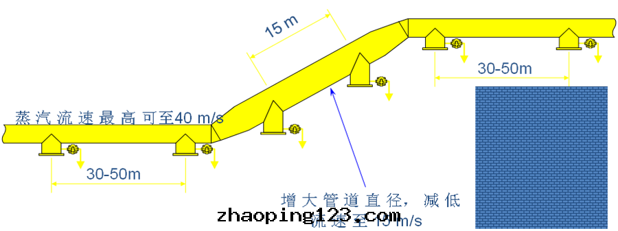 1、從鍋(guō)爐出(chū)来(lái)後(hòu)的蒸汽管(guǎn)道(dào)應(yìng)略微向(xiàng)下傾斜,在(zài)盡可(kě)能(néng)的情(qíng)況下,要(yào)保證傾斜度(dù)1:100~200,該坡度(dù)将确保冷(lěng)凝水(shuǐ)在(zài)重(zhòng)力和(hé)蒸汽流動(dòng)的作(zuò)用(yòng)下流向(xiàng)排放(fàng)点,當然排放(fàng)点一(yī)定(dìng)要(yào)設置合理(lǐ)的疏水(shuǐ)閥。