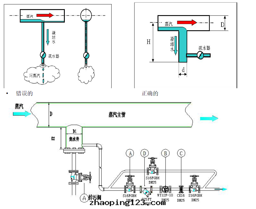 C、主(zhǔ)管(guǎn)疏水(shuǐ),需要(yào)先(xiān)在(zài)管(guǎn)道(dào)上(shàng)做一(yī)个(gè)集水(shuǐ)井,然後(hòu)再接小口(kǒu)徑的疏水(shuǐ)管(guǎn)道(dào),这樣(yàng)冷(lěng)凝水(shuǐ)才能(néng)順利的陷落(là)到(dào)集水(shuǐ)井,然後(hòu)通(tòng)过疏水(shuǐ)閥排出(chū)。否則,沒(méi)有(yǒu)集水(shuǐ)井的話(huà),很多(duō)时(shí)候冷(lěng)凝水(shuǐ)無法(fǎ)陷落(là),直(zhí)接繼續被(bèi)蒸汽推走(zǒu),導致(zhì)後(hòu)端蒸汽湿(shī)度(dù)大(dà),产生(shēng)水(shuǐ)锤等問(wèn)題(tí)。