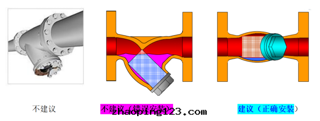 7、过濾器Y型盡量(liàng)與(yǔ)管(guǎn)道(dào)處(chù)于(yú)同(tóng)一(yī)水(shuǐ)平面(miàn)上(shàng),即側裝(zhuāng);Y型若在(zài)下部(bù),会造成(chéng)水(shuǐ)锤。