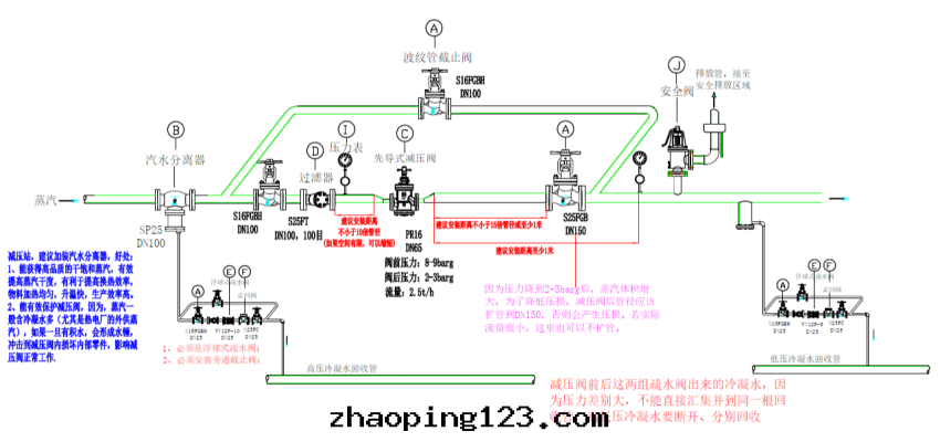 C、安(ān)裝(zhuāng)要(yào)求較高(gāo),需要(yào)在(zài)減壓閥前(qián)安(ān)裝(zhuāng)100目濾网过濾器和(hé)汽水(shuǐ)分(fēn)離器(分(fēn)離器底部(bù)需要(yào)配套(tào)浮球式疏水(shuǐ)閥)。