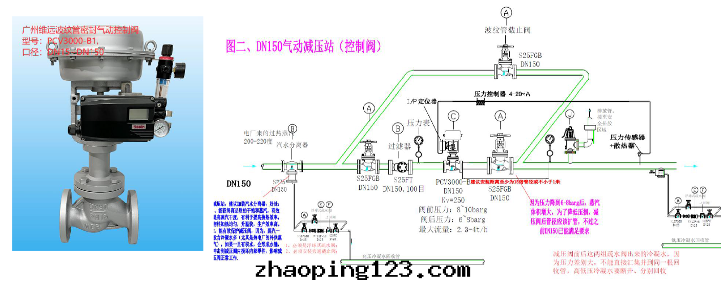 與(yǔ)壓力變(biàn)送器和(hé)壓力控制器配套(tào)使用(yòng),通(tòng)过反(fǎn)饋信号(hào)来(lái)實(shí)現(xiàn)蒸汽壓力的等百分(fēn)比調节(jié)。現(xiàn)在(zài)越来(lái)越多(duō)的用(yòng)戶開(kāi)始選用(yòng)气(qì)動(dòng)控制閥来(lái)替代(dài)傳統的減壓閥,尤其(qí)是(shì)DN100及(jí)以(yǐ)上(shàng)大(dà)口(kǒu)徑,主(zhǔ)要(yào)是(shì)基于(yú)两(liǎng)个(gè)因(yīn)素:一(yī)是(shì)整套(tào)大(dà)口(kǒu)徑減壓站的成(chéng)本(běn)很高(gāo),接近(jìn)甚至(zhì)高(gāo)于(yú)一(yī)套(tào)气(qì)動(dòng)控制閥系(xì)統的成(chéng)本(běn)(包(bāo)括管(guǎn)道(dào)和(hé)安(ān)裝(zhuāng)成(chéng)本(běn)),二(èr)是(shì)气(qì)動(dòng)控制閥对(duì)冷(lěng)凝水(shuǐ)沒(méi)有(yǒu)減壓閥那(nà)樣(yàng)敏感(gǎn)。